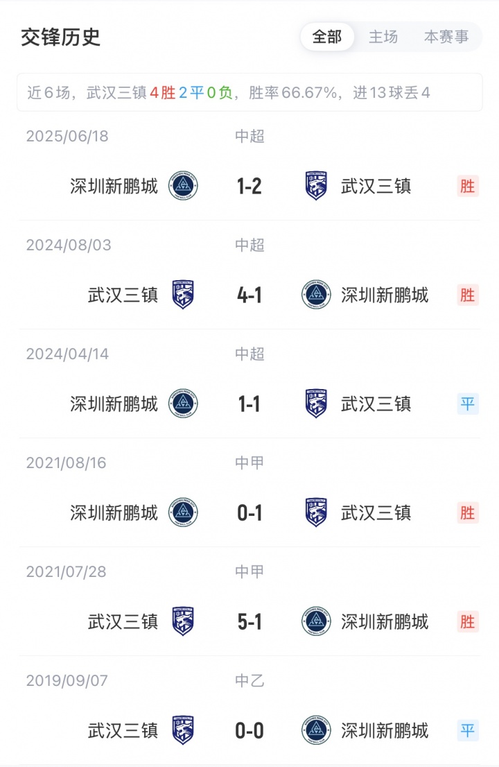 【交锋战绩】